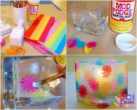 42-ciparalel.az Bu rəngarəng şamdanı hazırlamaq üçün aşağıdakı materiallar lazımdır: quruduqdan sonra şəffaflaşan yapışqan stəkan şam parça qayçı bir…